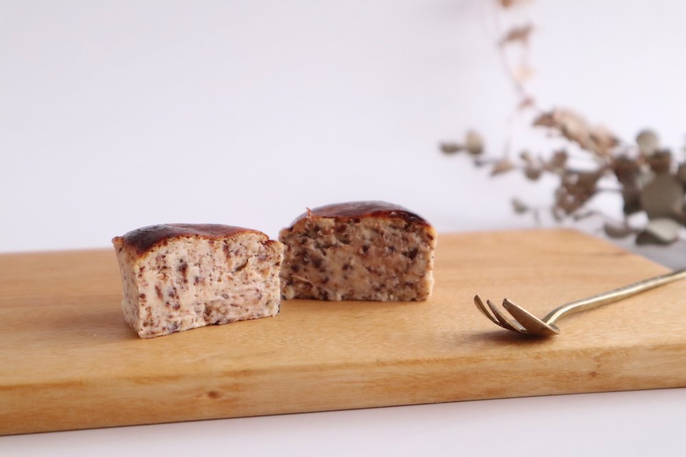 チョコレートは濃厚なバスクチーズケーキ生地の中に細かく砕いて混ぜ込みました。