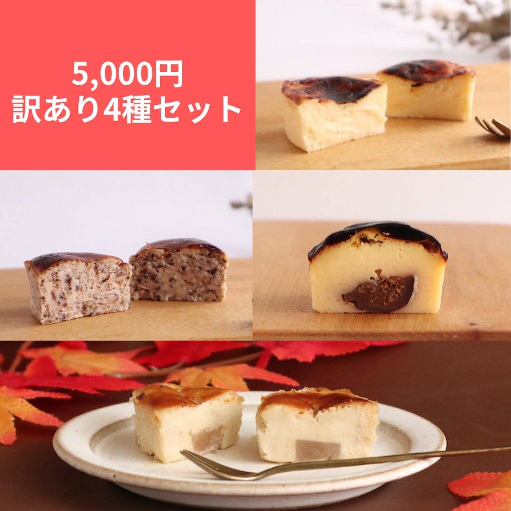 【訳あり】バスクチーズケーキプレーン 小サイズ×3個、【訳あり】カカオバスクチーズケーキ 小サイズ×3個、【訳あり】和栗のチーズケーキ 小サイズ×3個、【訳あり】いちじくのバスクチーズケーキ 小サイズ×2個 |